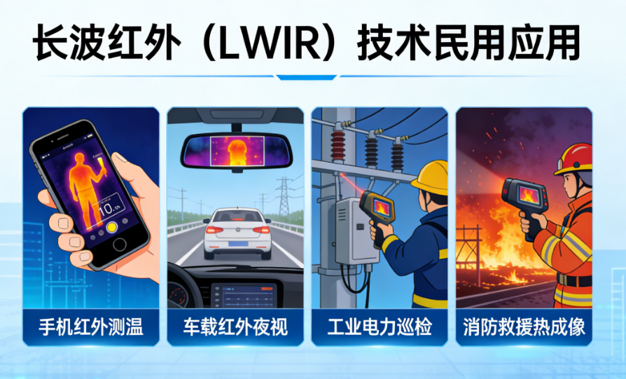 红外技术作为一种非接触式感知技术,已广泛应用于专业与民用领域。在众多红外波段中,长波红外(LWIR,波段范围8–14μm)凭借其与民用场景的高度适配性,成为当前最具普及潜力的红外技术。本文将从技术定义出发,逐步拆解其核心原理、核心优势、应用场景,并通过与同类技术的对比,明确其民用价值,最终展望其未来发展趋势,形成完整的逻辑闭环,清晰呈现长波红外技术的民用普及逻辑。