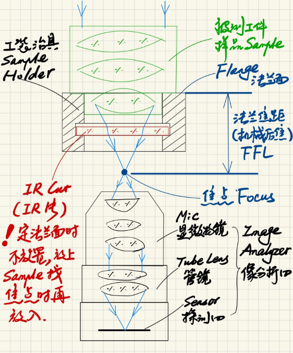 在光学镜头光学参数检测工作中,MTF传函仪HR机台是测量法兰焦距(FFL,亦称机械后焦)、后焦距(BFL)的重要设备,此前业内形成的无IR片场景下的简易测量方法(下称“传统方法”)已具备成熟的实操逻辑,但镜头模组中红外截止滤光片(IRCut,下称IR片)的存在,对测量精度与实操流程提出了新要求。本文以IR片的光学特性为测量前提,梳理传统方法的核心原理,分析直接替代法的技术缺陷,提出基于工装治具优化的解决方案,并明确方案实施的关键难点,为含IR片镜头的FFL/BFL精准测量提供系统性参考。
