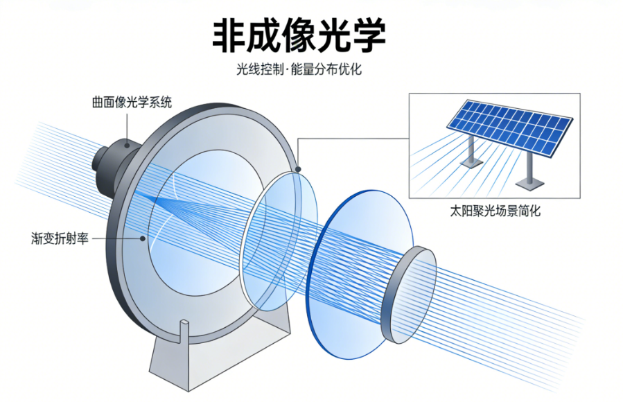 非成像光学作为光学领域的重要分支,其核心目标并非实现物象的精准成像,而是通过系统化的光学设计与调控,达成光能的高效利用、均质化分布及定向传输。该技术广泛应用于高端照明设备、太阳能利用、精密仪器等关键领域,凭借对光线传播规律的深度挖掘,为诸多行业的技术升级提供了核心支撑。本文将从均匀照明技术、光源建模方法及复合聚光器设计三大核心维度,系统阐述非成像光学的技术原理、关键器件及应用场景,以期为相关领域的研究与实践提供参考。