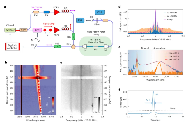 超短光脉冲与宽带频率梳作为电信通信、人工智能、天文观测等领域的核心技术支撑,其性能水平直接影响相关领域的应用精度与运行效率。长期以来,传统技术体系始终面临显著技术瓶颈:微谐振器虽能生成短脉冲,却存在梳间距过大的固有缺陷;光纤谐振器虽可实现精细间距输出,却难以突破百飞秒级脉冲持续时间的限制。近日,新西兰奥克兰大学与华南理工大学联合研究团队在《NaturePhotonics》发表的最新研究成果,通过相位相干光脉冲驱动克尔谐振腔的创新方案,成功实现持续时间远低于100飞秒的超短耗散拉曼孤子,为解决这一长期存在的技术难题提供了创新性解决方案。