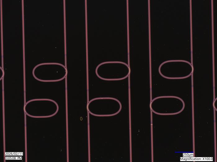 近日,美国科罗拉多大学博尔德分校(CUBoulder)的研究团队成功研制出一款超高Q值微谐振器,该器件采用赛跑场式设计,核心目标是打造低损耗谐振结构,以更少的光学功率实现对光的捕获与放大,破解传统微谐振器损耗过高的行业痛点。这款集成光学波导微谐振器体积微小,厚度仅为人头发丝的十分之一。(图片由科罗拉多大学博尔德分校工程与应用科学学院提供)