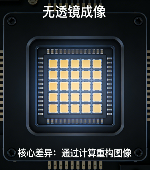 无透镜成像,本质上是一种不依赖传统光学透镜,通过光学编码与算法解码相结合的方式,实现物体图像重建的计算成像技术。与传统成像技术“物理聚焦成像”的核心逻辑不同,无透镜成像以“计算重构”替代“透镜聚焦”,摆脱了对高精度透镜及复杂光学装调系统的依赖,通过前端光学编码记录光场信息,后端算法解码重构清晰图像,实现了成像系统的微型化、低成本化与功能多元化。